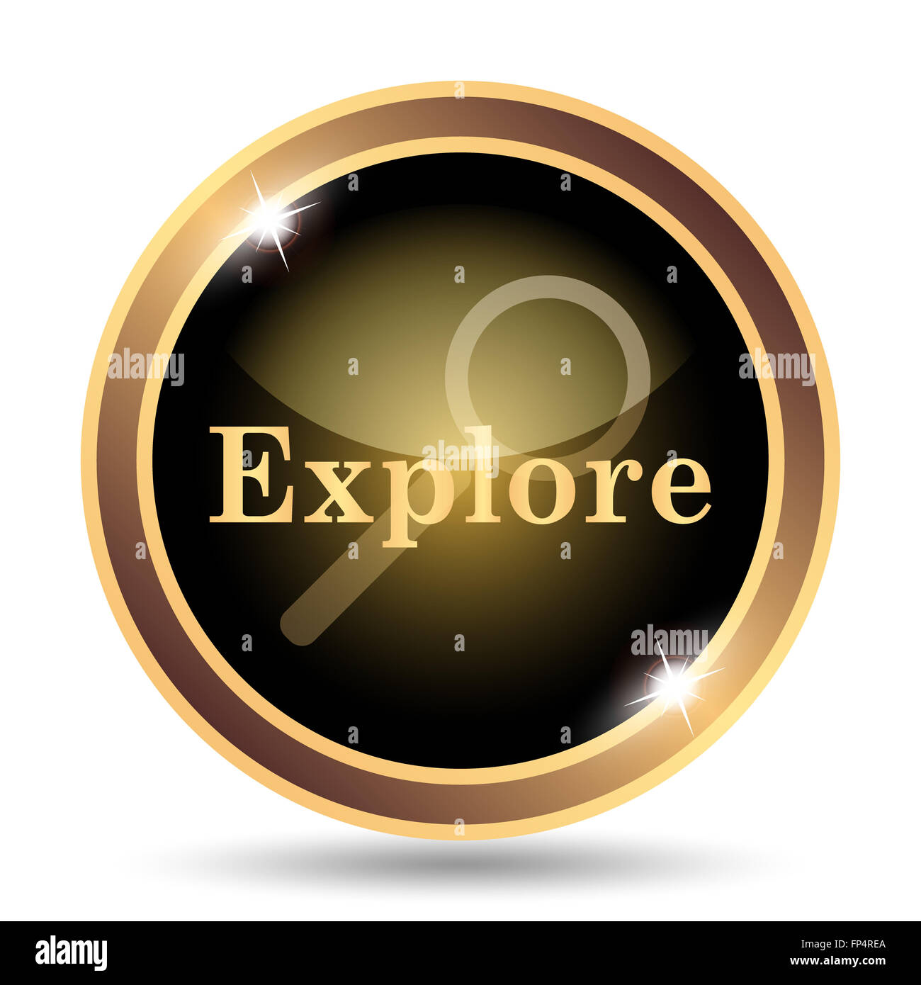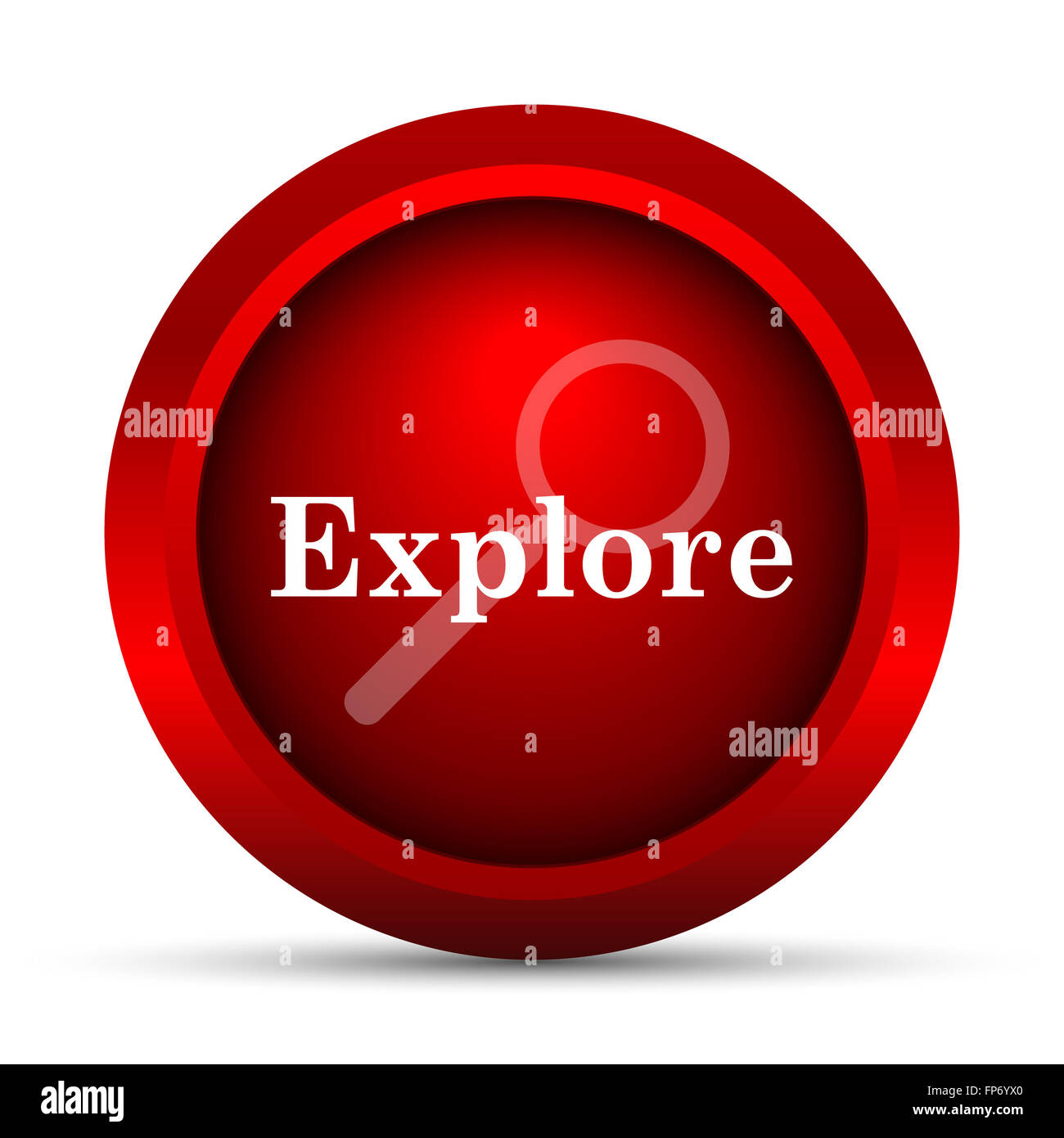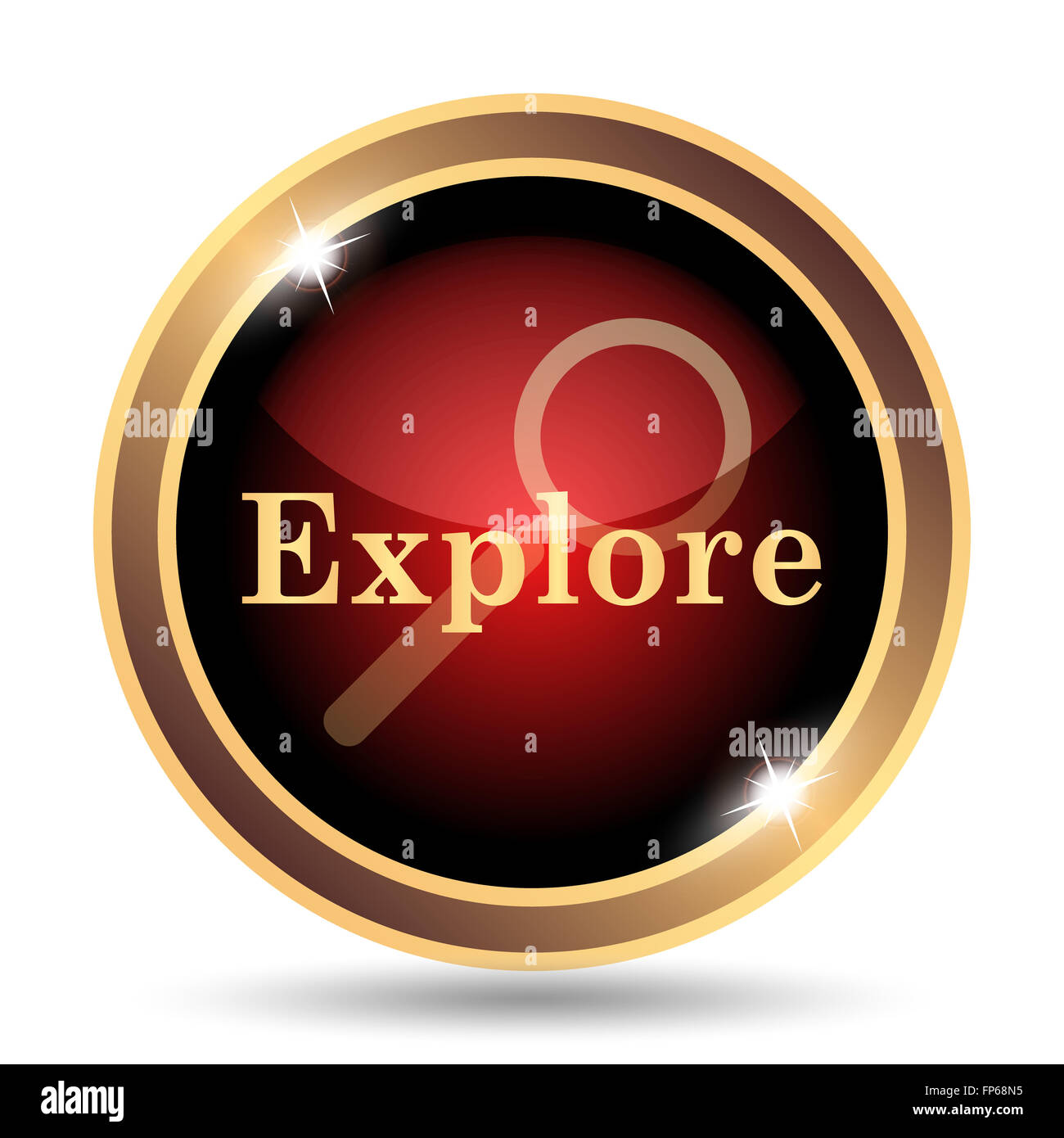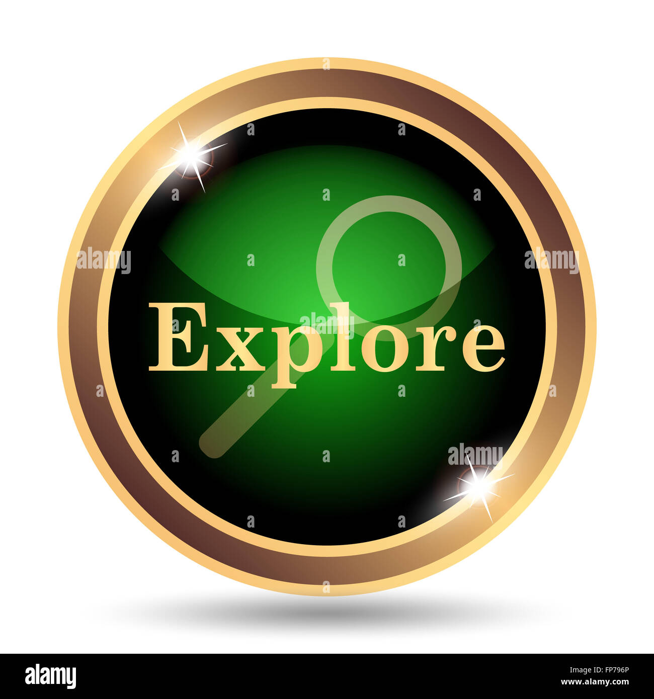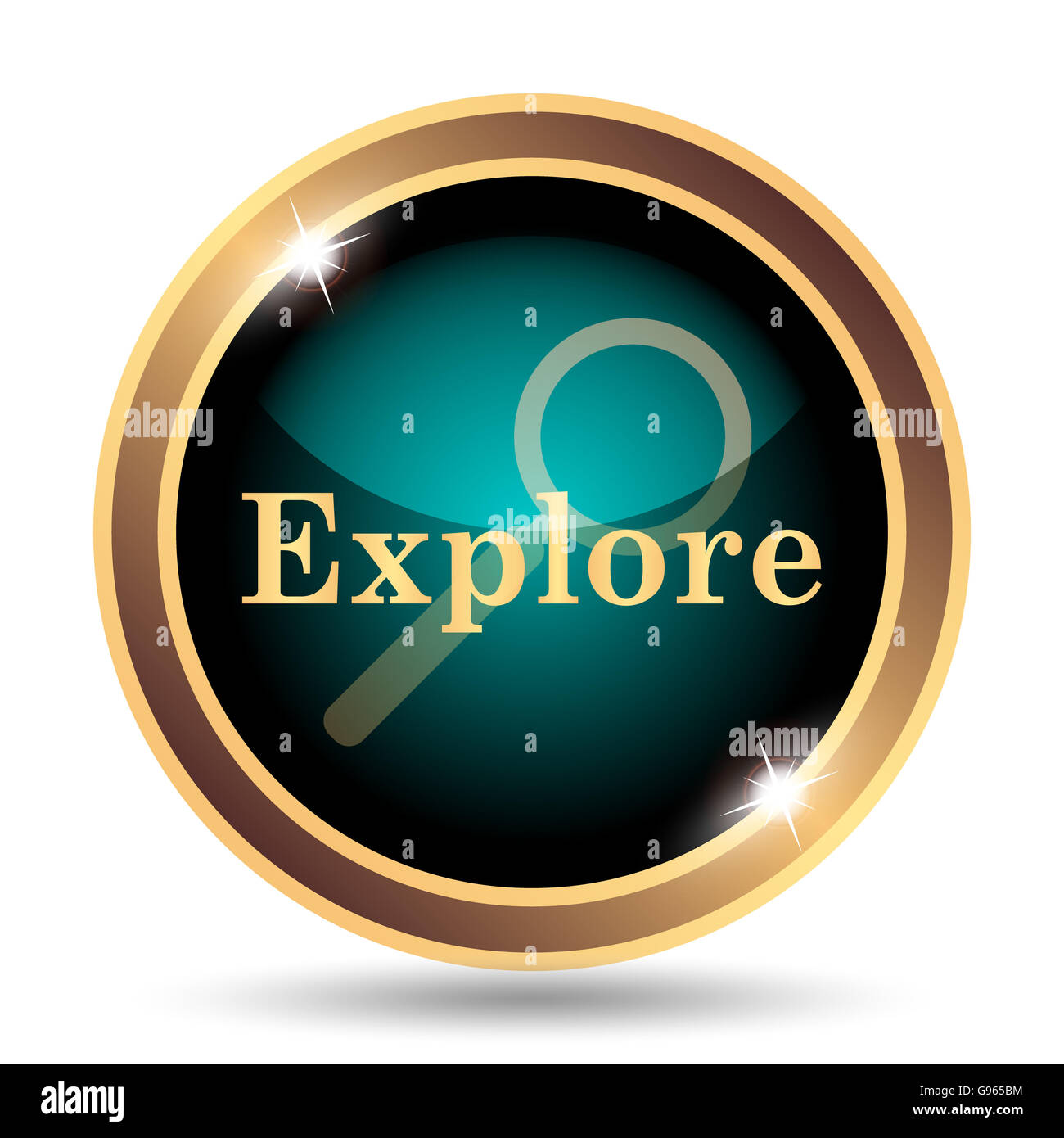 Explore icon. Shiny glossy internet button on white background Stock ...