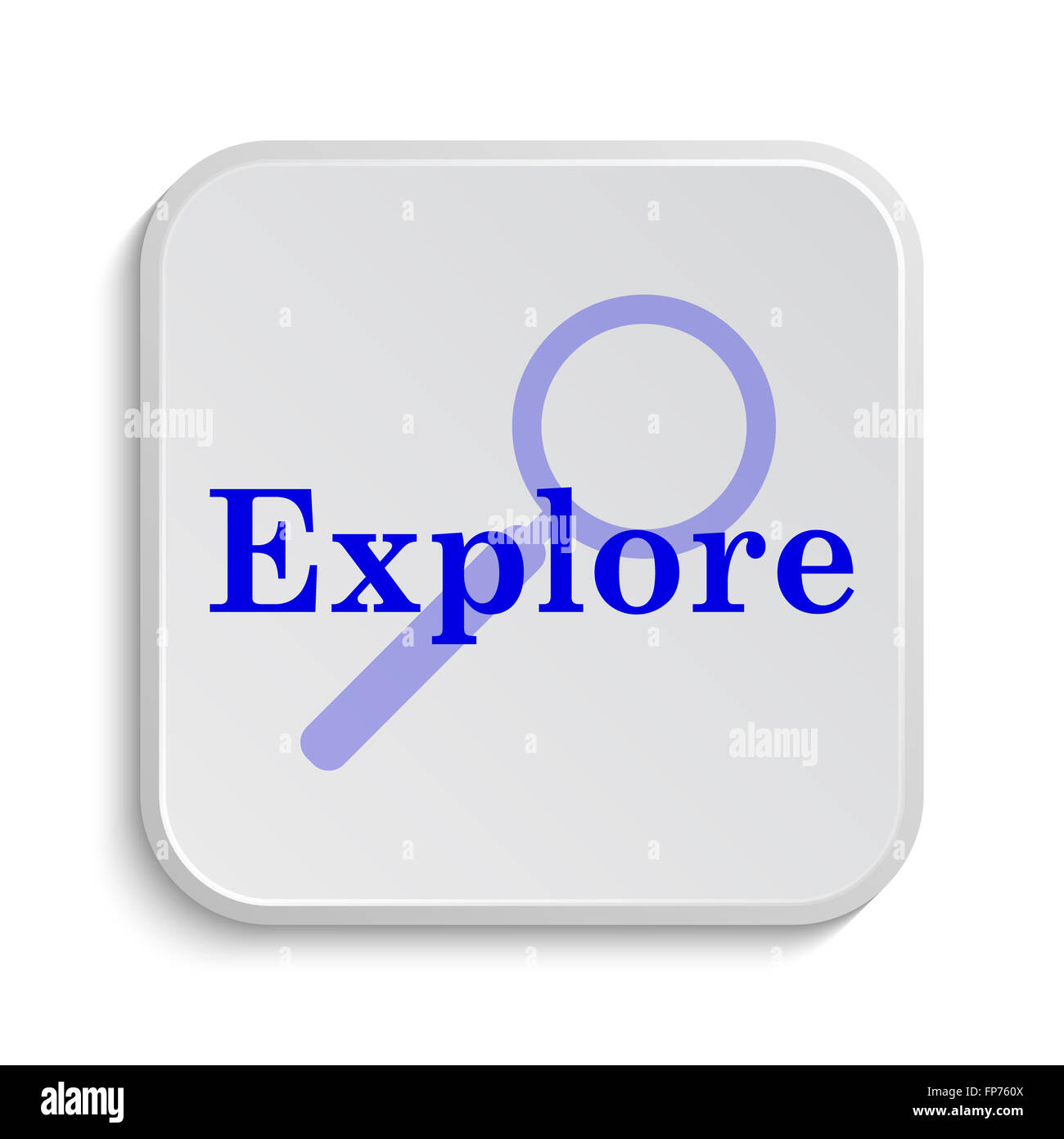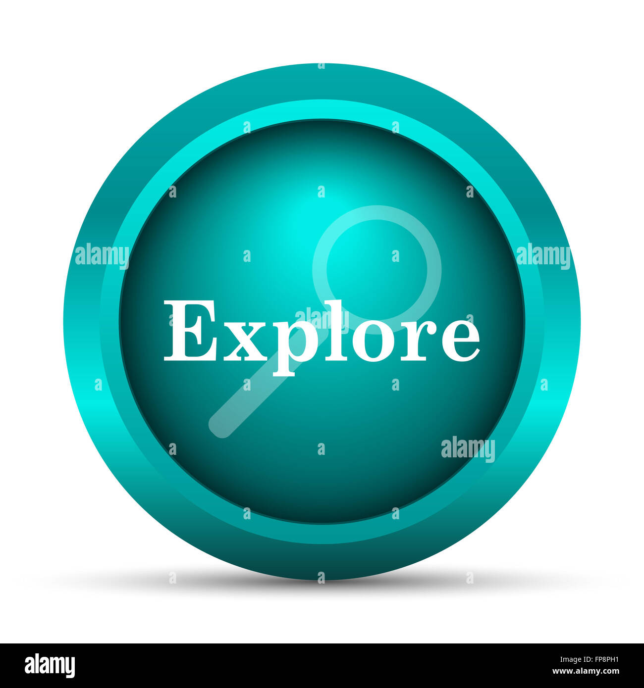Explore icon, blue website button on white background Stock Photo - Alamy