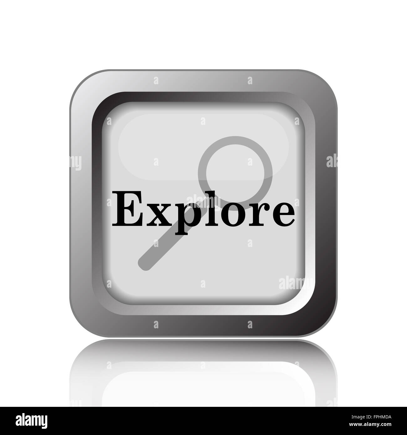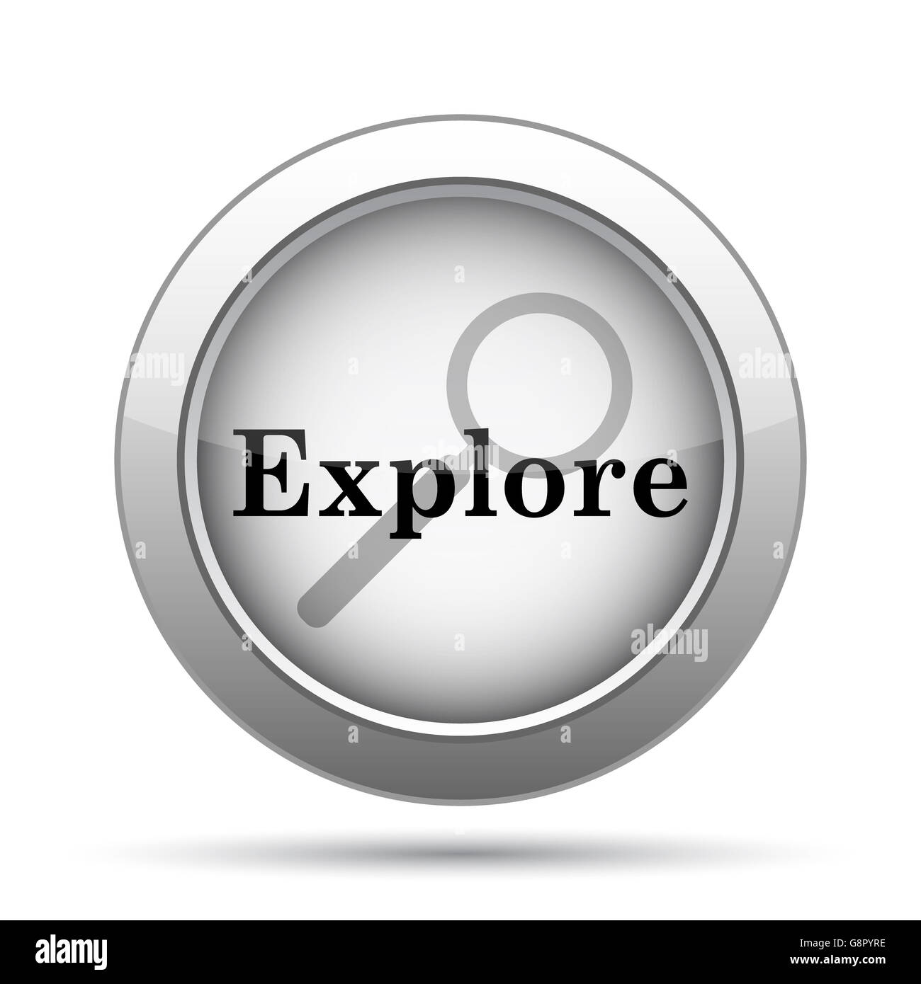 Explore icon. Metallic internet button on white background Stock Photo ...