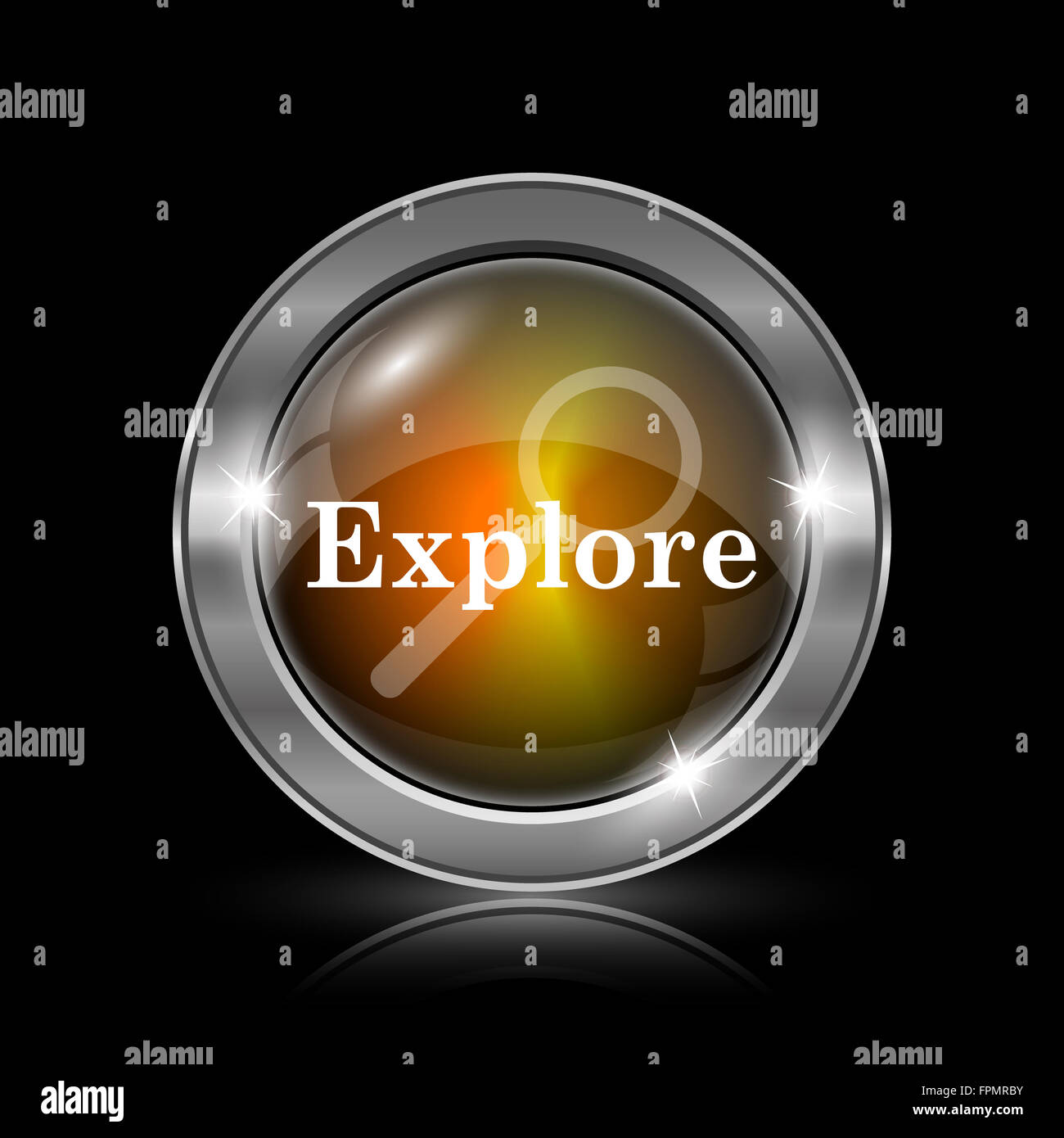 Explore icon. Metallic internet button on black background Stock Photo ...