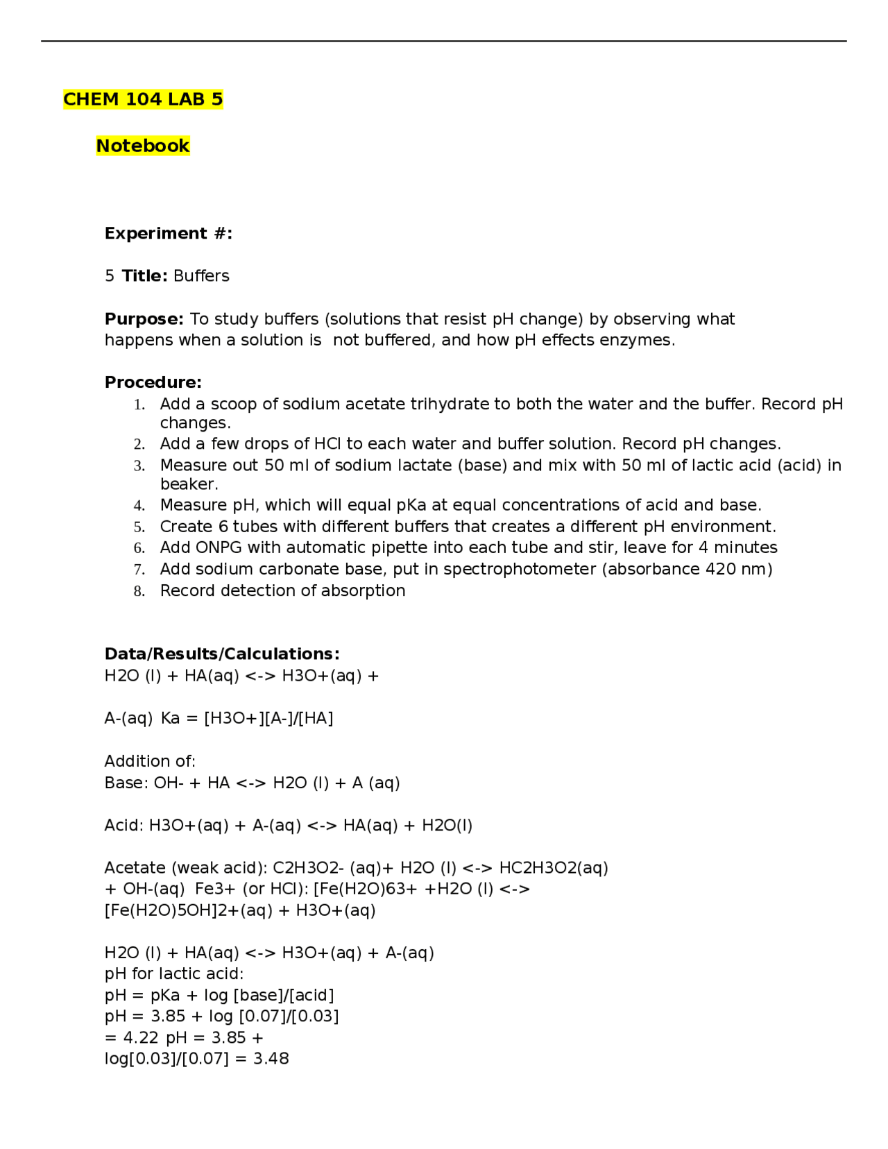 CHEM 104 Lab 5: Buffers - Exploring pH Changes and Enzyme Activity ...