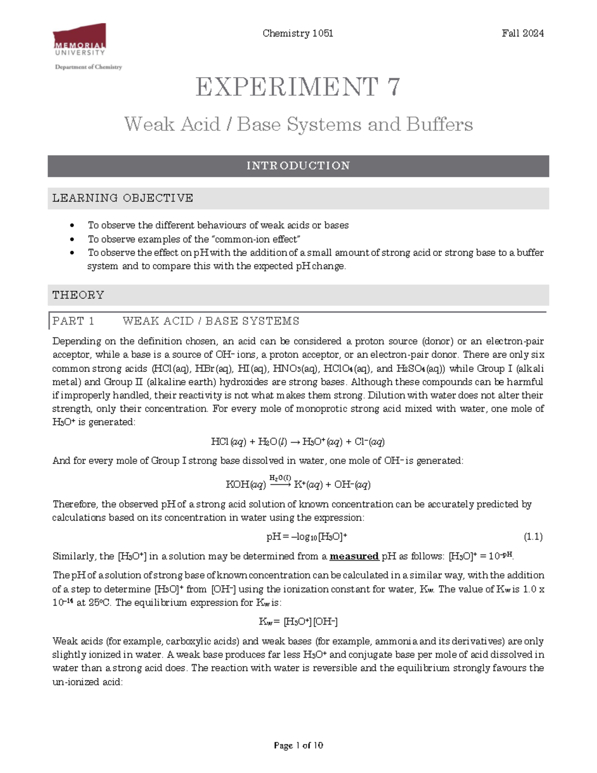 Chemistry 1051: Exp 7 - Exploring Buffers and Weak Acid/Base Systems ...