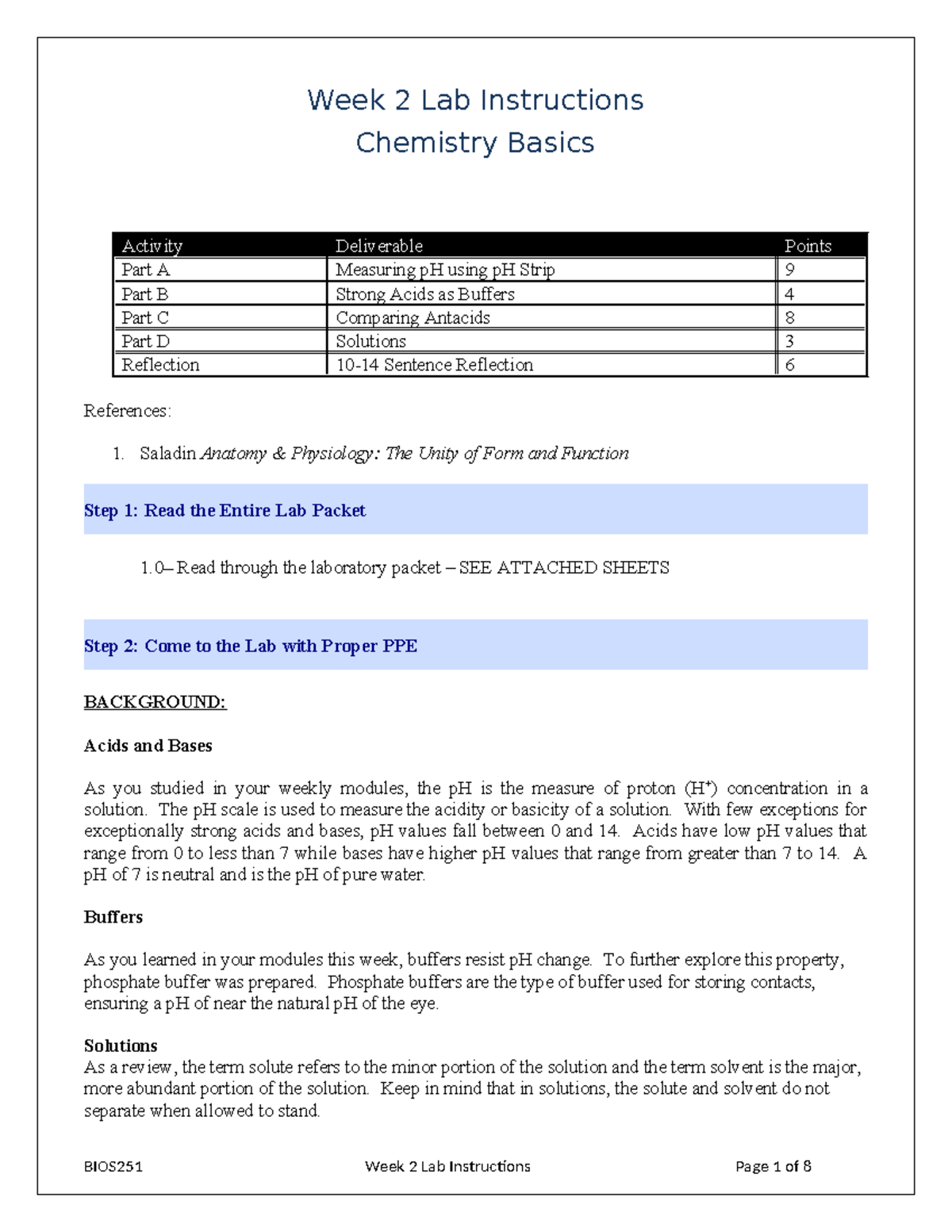 BIOS251 Week 2 Lab: Exploring pH, Buffers, and Solutions - Studocu