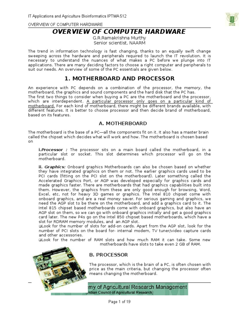 Overview of Computer Hardware Components | PDF | Random Access Memory ...