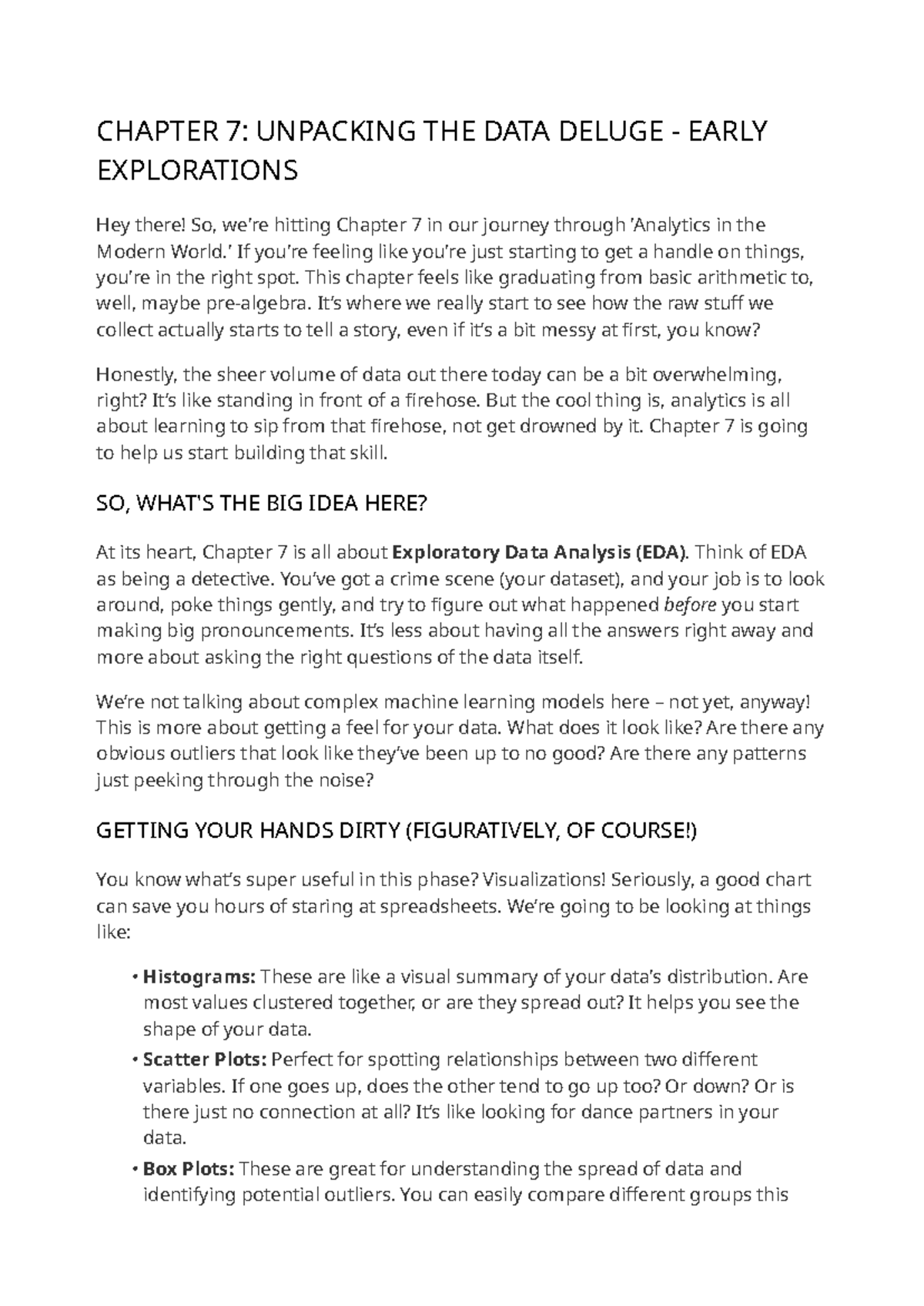 Analytics in Modern World - CH 7: Exploring Data Analysis - Studocu