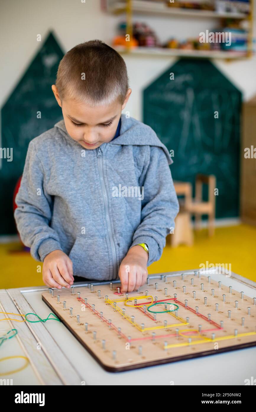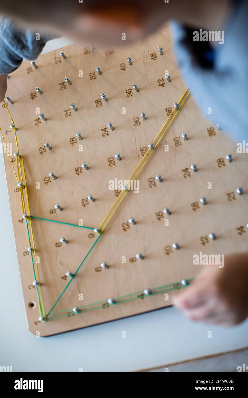 Exploring basic math and geometry concepts with geoboard Stock Photo ...