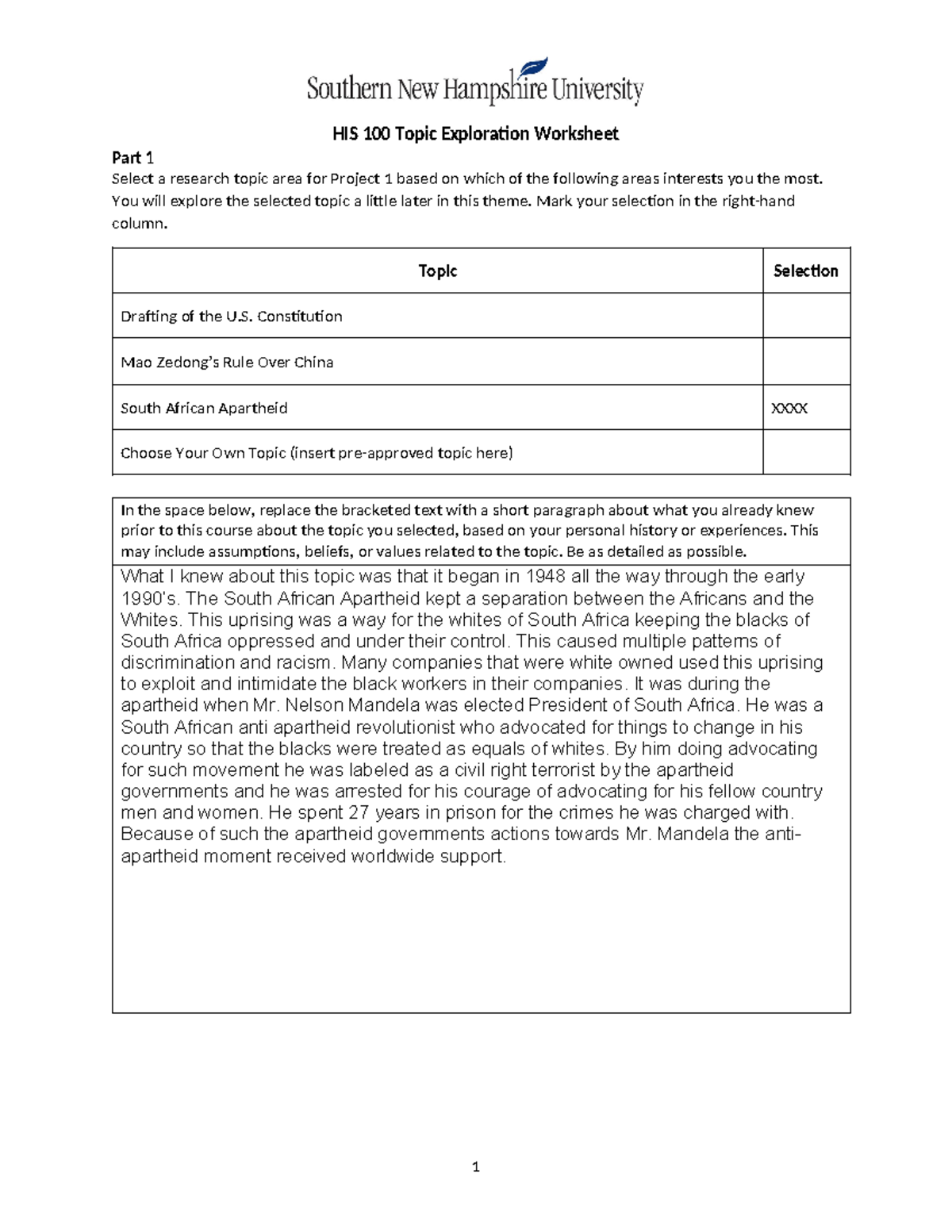2-3 Topic Exploration Worksheet - HIS 100 Topic Exploration Worksheet ...