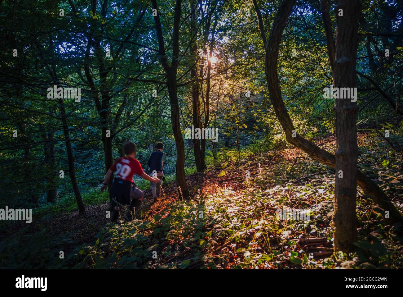 Two teenage girls exploring in woodland Stock Photo - Alamy