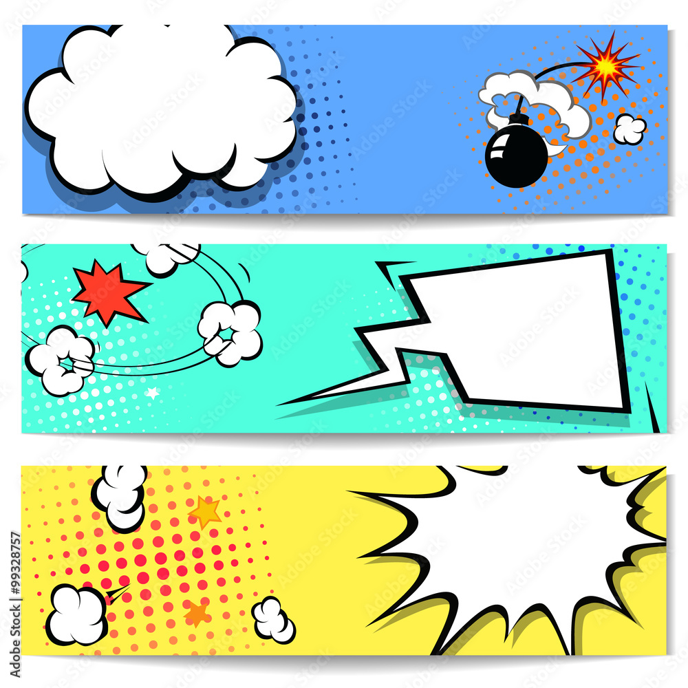 Explosion Comic Bubble Web Header Set Banner Comics Background High-Res ...