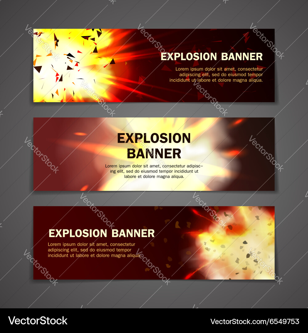Explosion fire banner horizontal set, flat style 8859900 Vector Art at ...