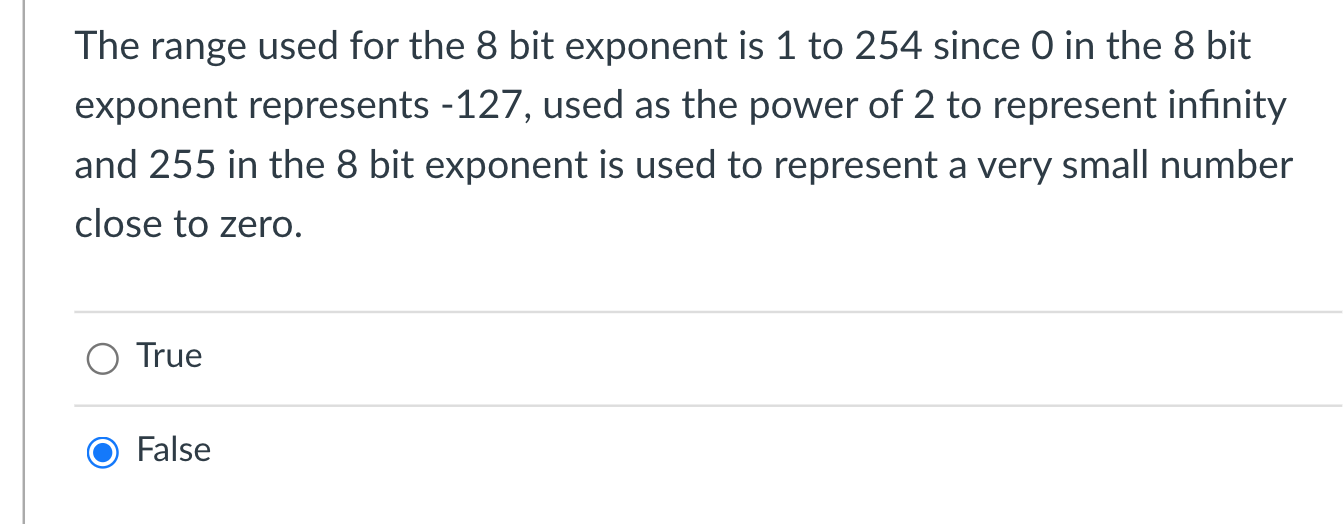 Solved The range used for the 8 bit exponent is 1 to 254 | Chegg.com