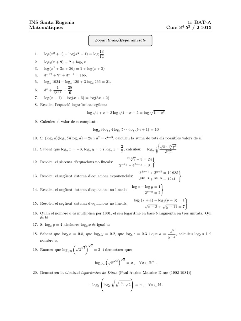 Exponentia and Llogarithmic Exercices | PDF