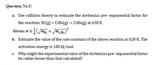 Solved Question No.3: a. Use collision theory to estimate | Chegg.com