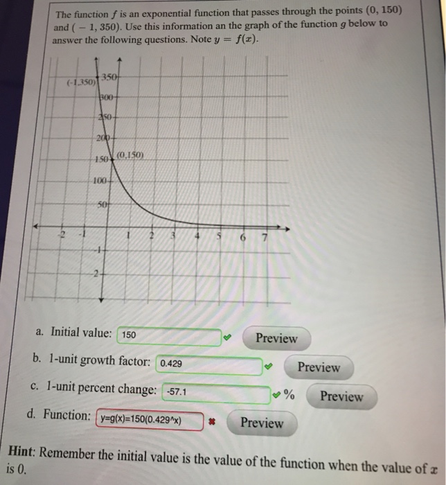 Solved (1 point) Find the exponential function f(x)=a⋅bx | Chegg.com