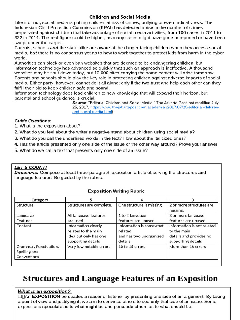 LANGUAGE FEATURES OF EXPOSITION TEXTS: A Comprehensive Guide - Studocu