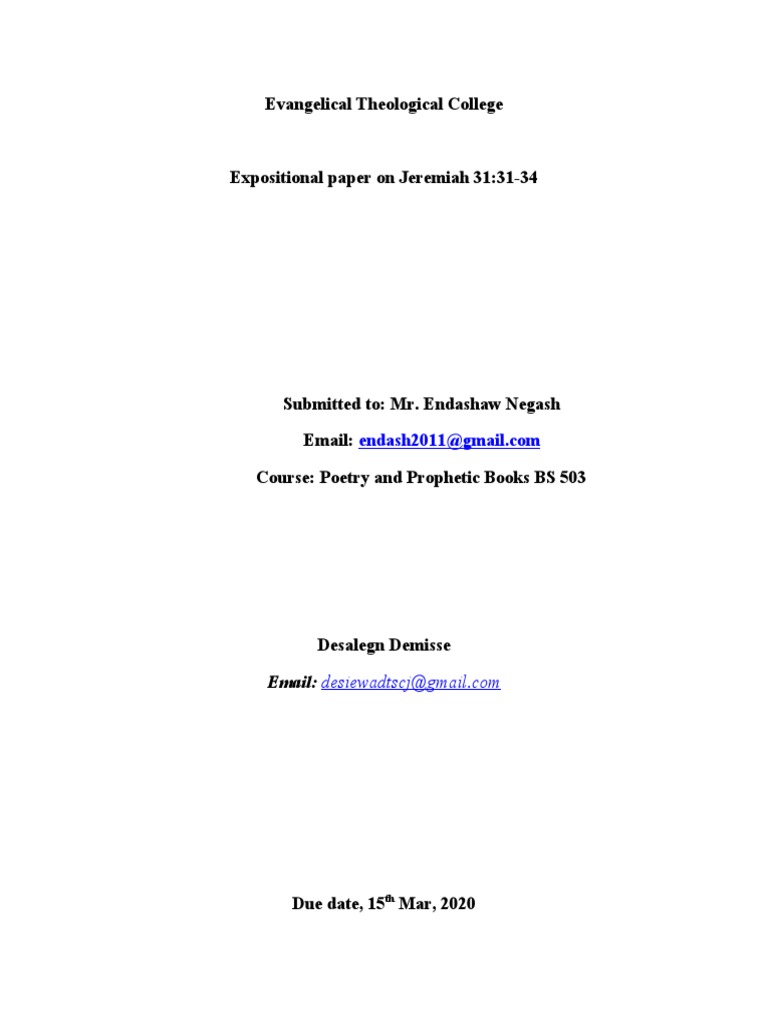 Expositional Paper | PDF | New Covenant | Jeremiah