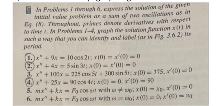 Solved In Problems 1 through 6, express the solution of the | Chegg.com