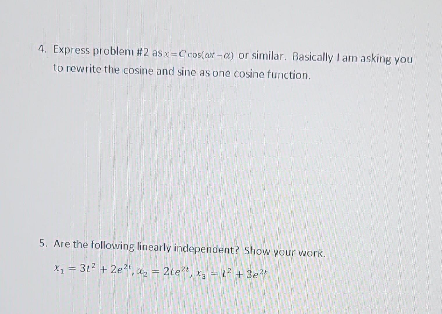 Solved 4. Express problem \\#2 as \\( x=C \\cos (\\omega | Chegg.com