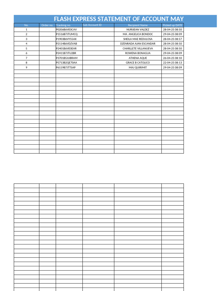 Flash Express Statement of Account May 02, 2025 | PDF