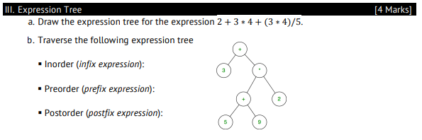 Solved III. Expression Tree a. Draw the expression tree for | Chegg.com