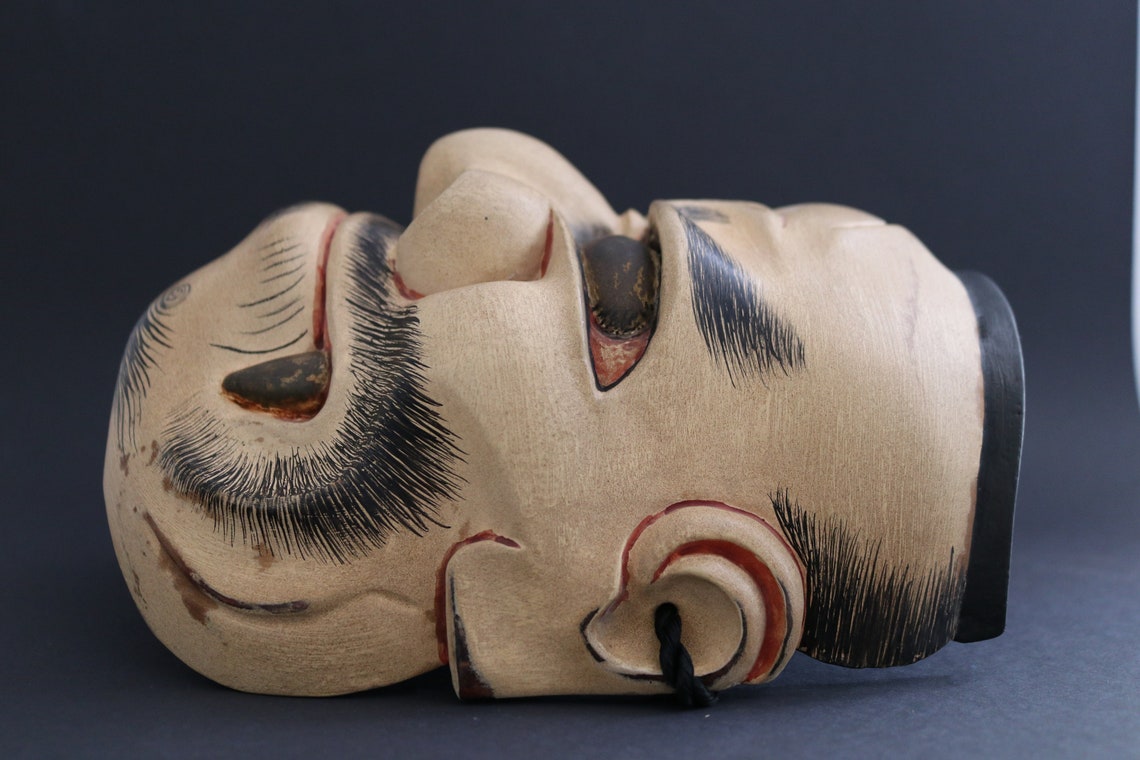Antique Japanese Noh Theater Mask Represents Okuninushi Hand Carved in ...
