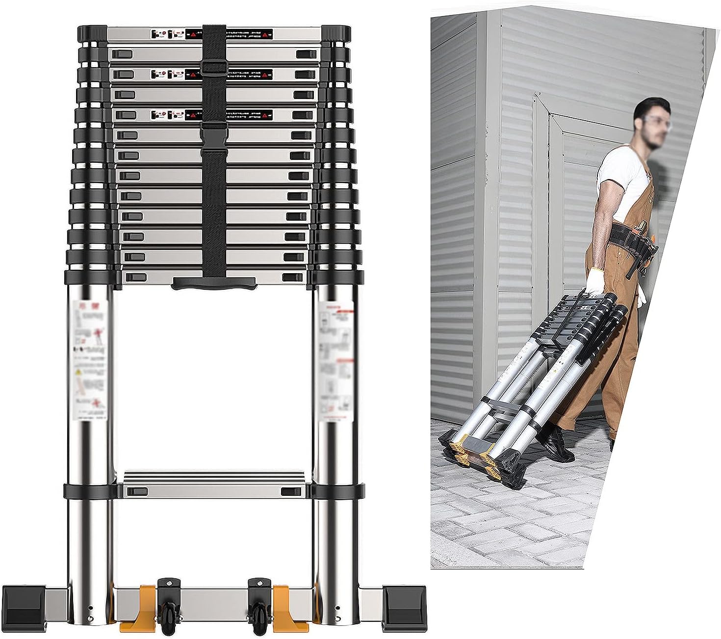 HomeLife Telescoping Extension Ladder, Stainless Steel Telescoping ...