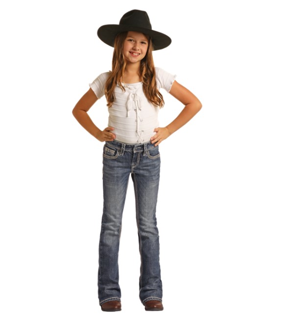 Rock & Roll, Girl's Extra Stretch Dark Wash Trousers, G5F9516 - Wilco ...