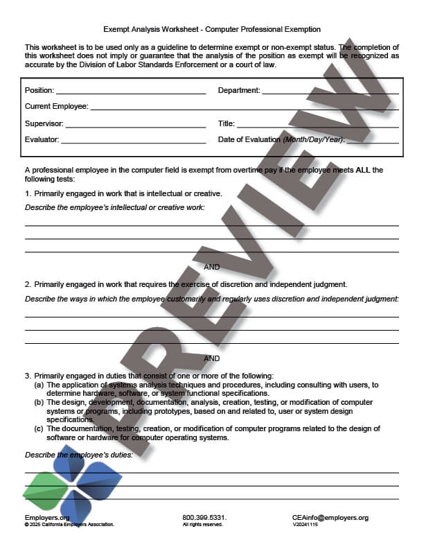 Exempt Analysis Worksheet - Computer Professional - California ...
