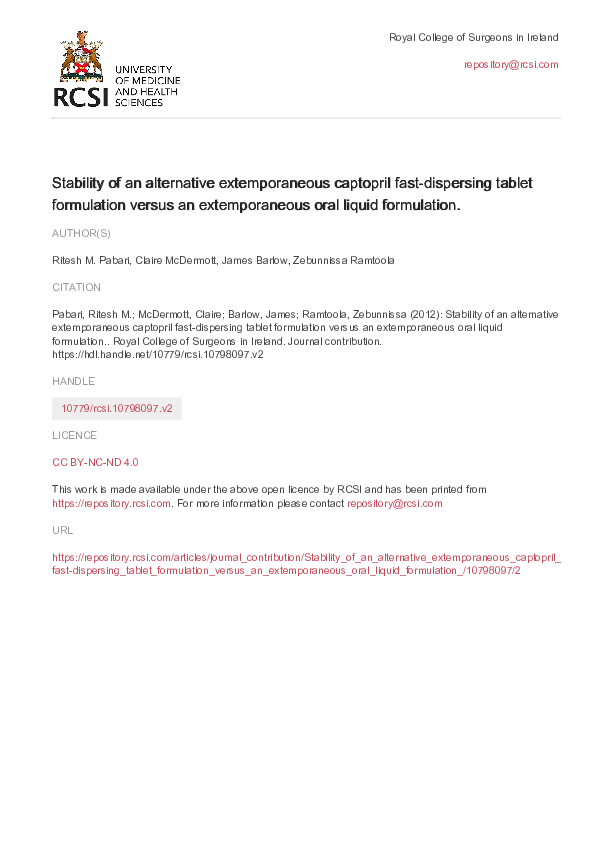 (PDF) Stability of an Alternative Extemporaneous Captopril Fast ...