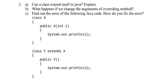 Solved 2. a) Can a class extend itself in java? Explain. b) | Chegg.com