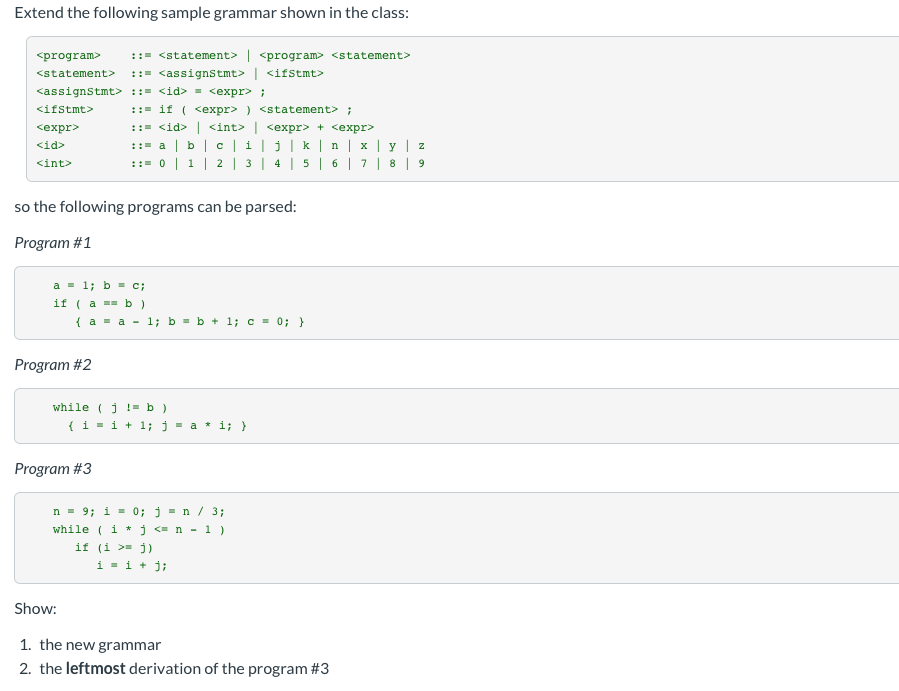 Extend the following sample grammar shown in the | Chegg.com