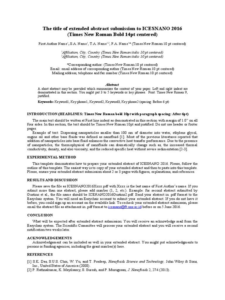 ICESNANO2016 Extended Abstract Template | PDF | Chemical Engineering ...