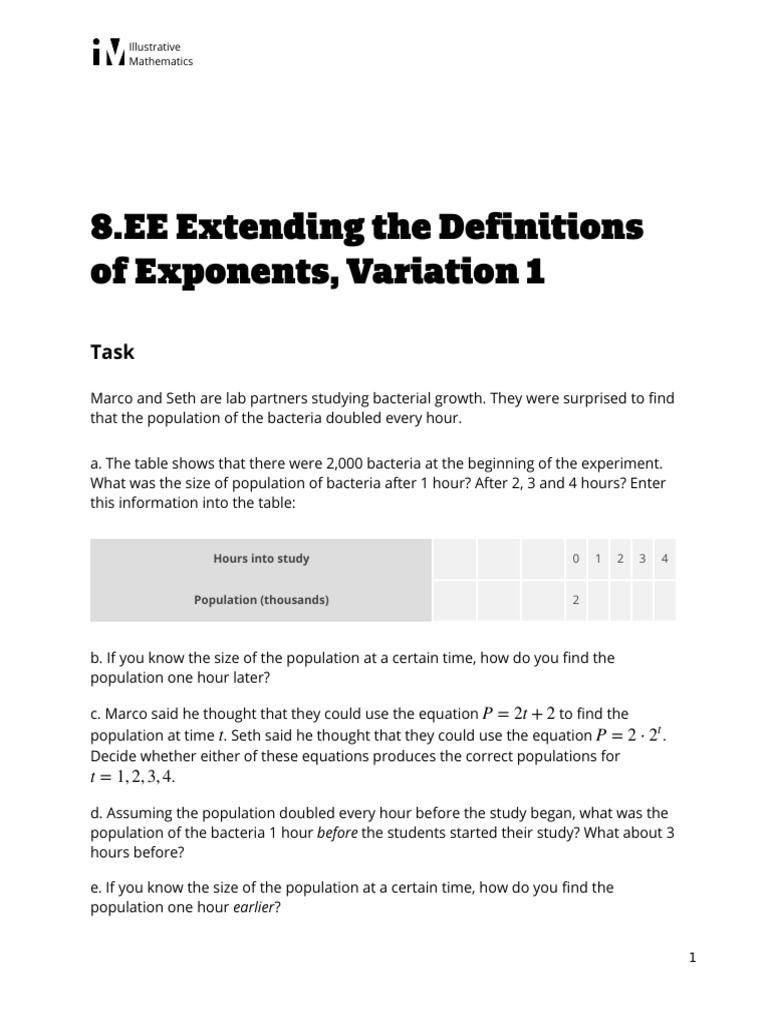 8.EE.a.1 Extending The Definitions of Exponents Variation 1 | PDF ...