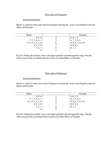 Back to Back Stem and Leaf Extension Question | Teaching Resources
