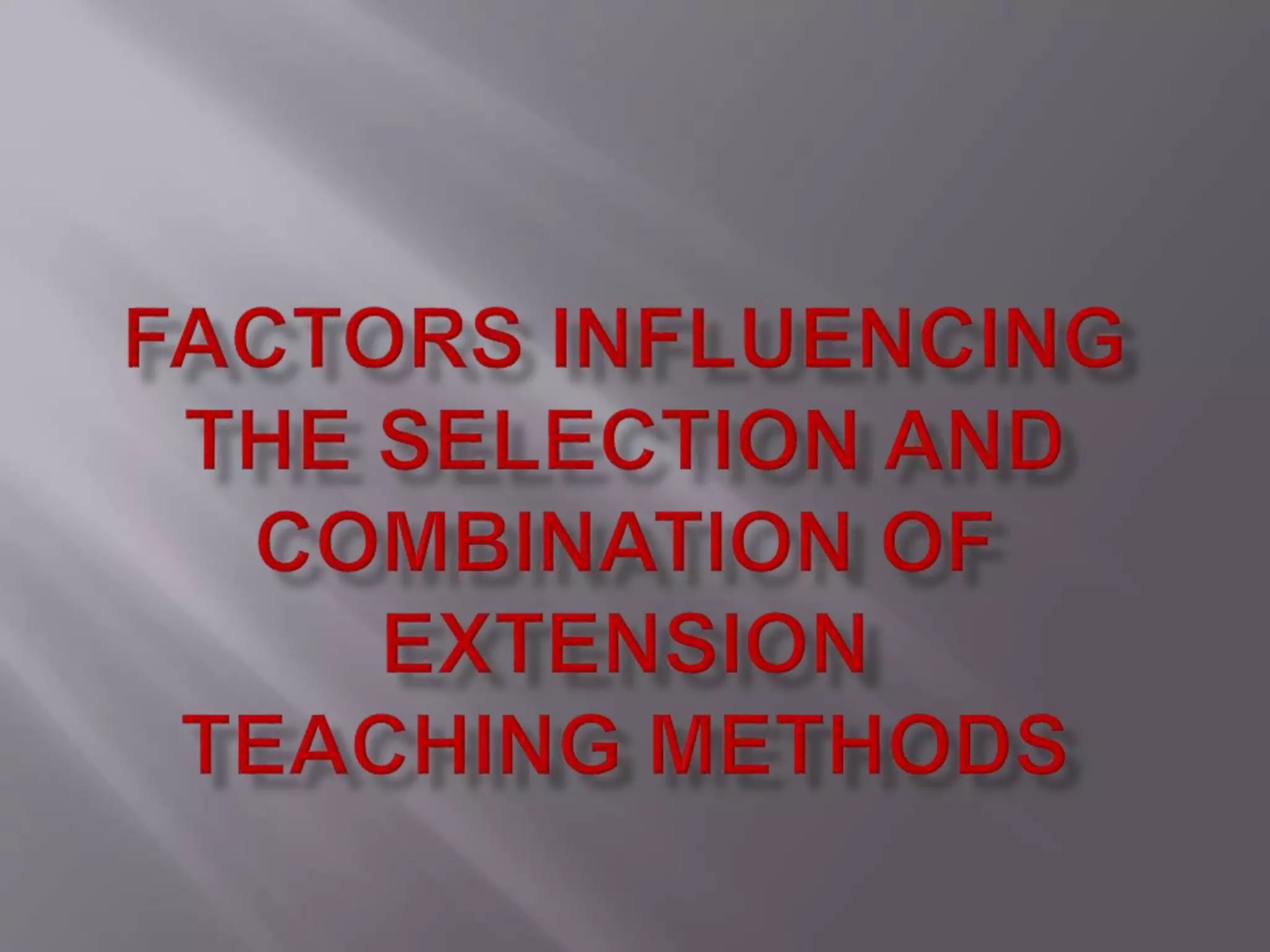 Choosing Extension Teaching Methods: Factors, Categories, and | Course Hero