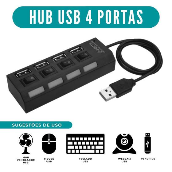 Extensor USB 4 Portas High Speed PC e Notebook Mouse Teclado - Hub 4 ...