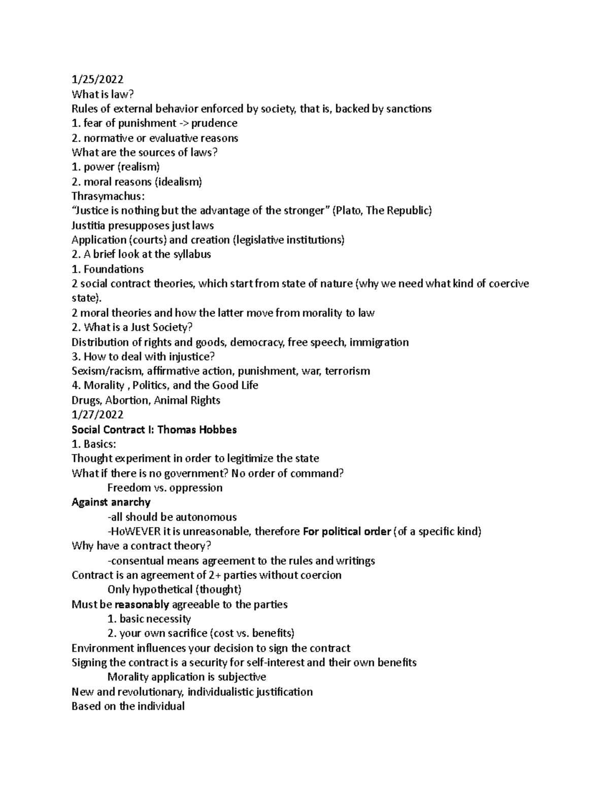 PHIL 146 - 1/25/ What is law? Rules of external behavior enforced by ...