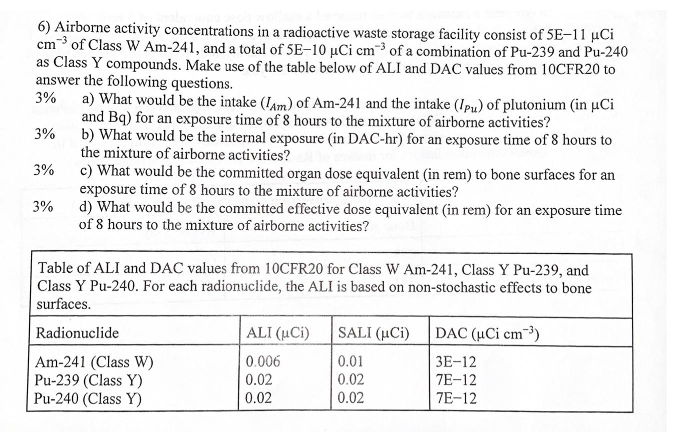 6) Airborne activity concentrations in a radioactive | Chegg.com