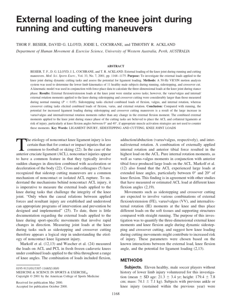 BESIER, LLOYD et al. 2001 - External loading of the knee | PDF | Knee ...