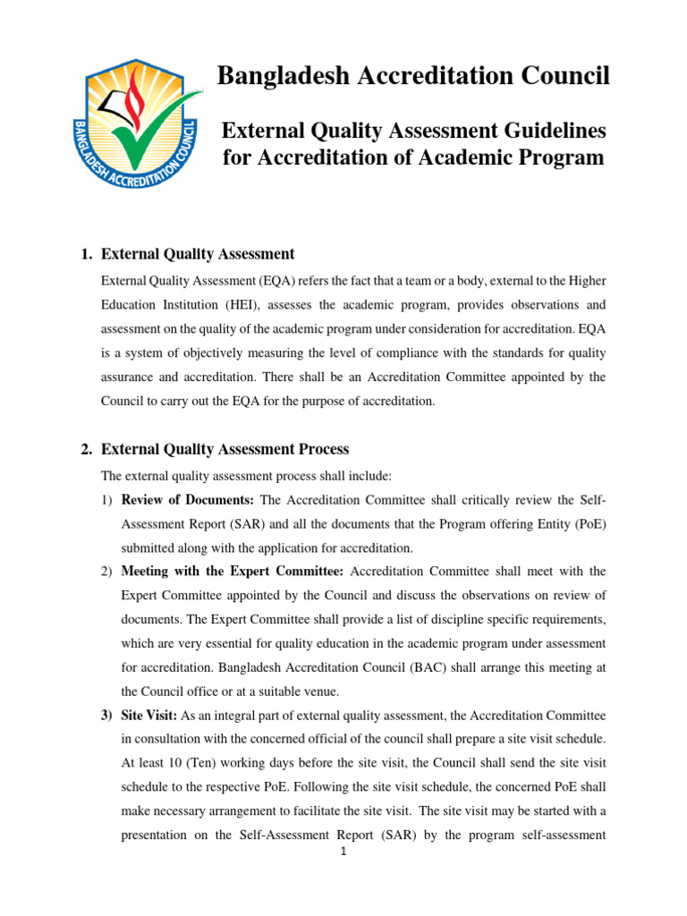 External Quality Assessment Guidelines For Accreditation of Academic ...