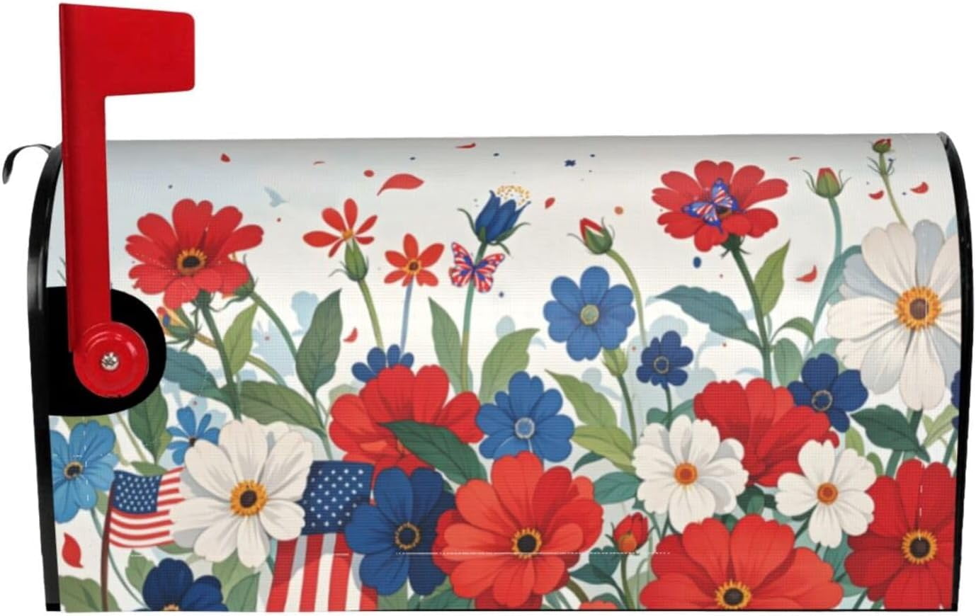 Butterfly Floral Independence Day Mailbox Cover, July 4th American ...
