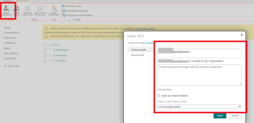 How to invite external users to a SharePoint site or Microsoft Team ...