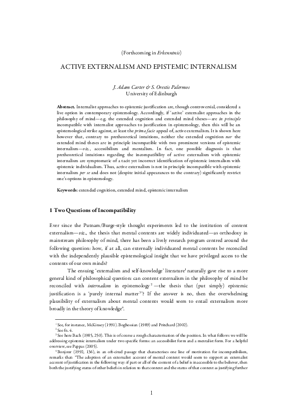Carter Palermos Active Externalism Epistemic Internalism | PDF ...