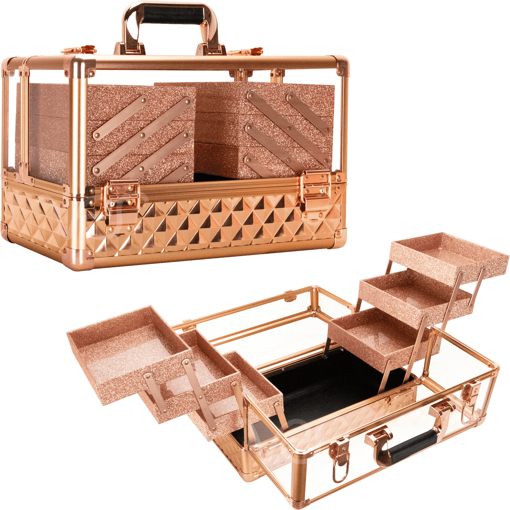 VER Beauty Carry Organizer, Armored Acrylic Makeup Train Case, 6 Tier ...