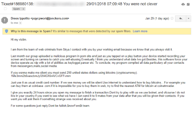 Sextortion scam email campaign has netted $143k in Bitcoin - Thexyz Blog