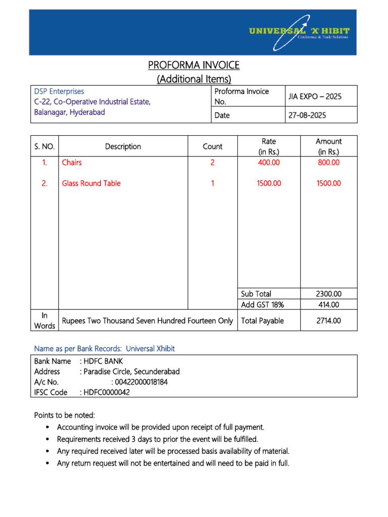 Proforma Invoice Extra Furniture - DSP | PDF