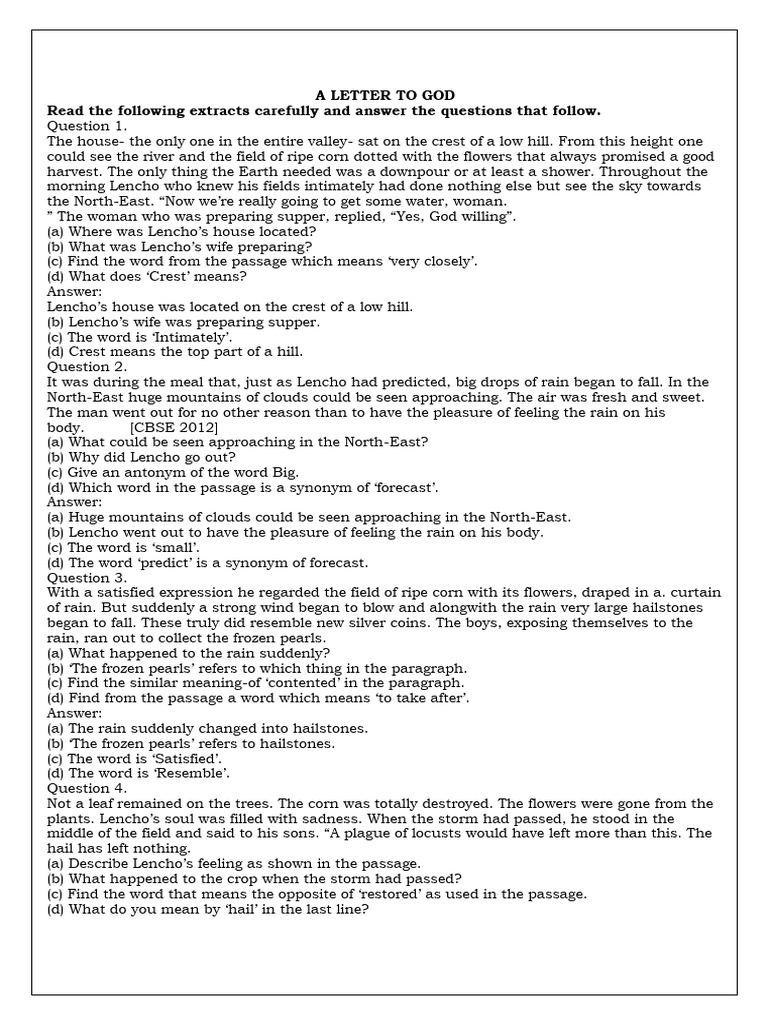 Extract Questions for "A Letter to God" | PDF | Storms | Hail
