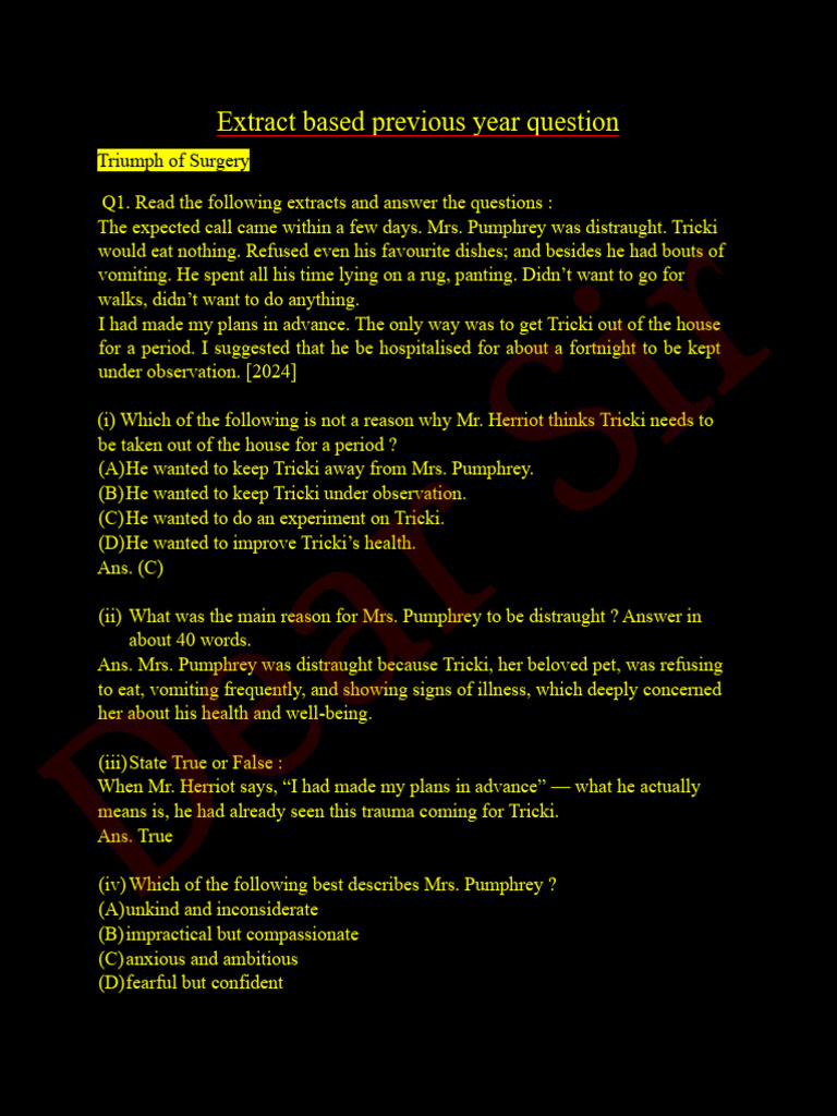 20 Extract Based Questions: Read the given extract/source carefully and a..