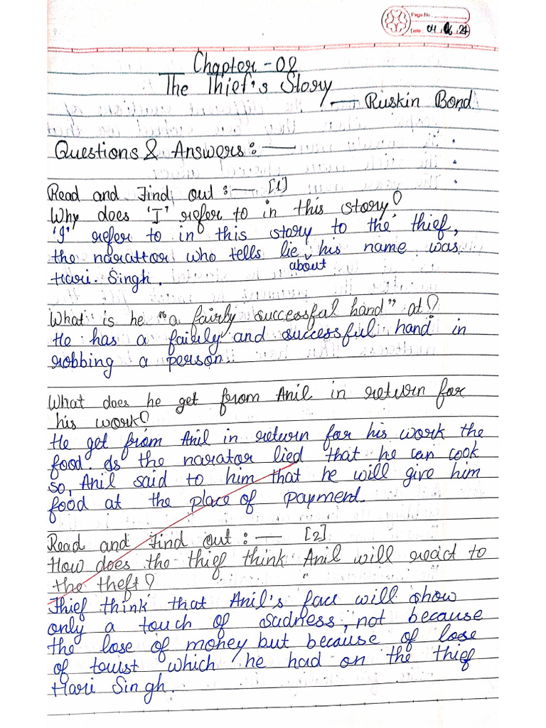 English Class 10th Thief Story Extract Questions | PDF