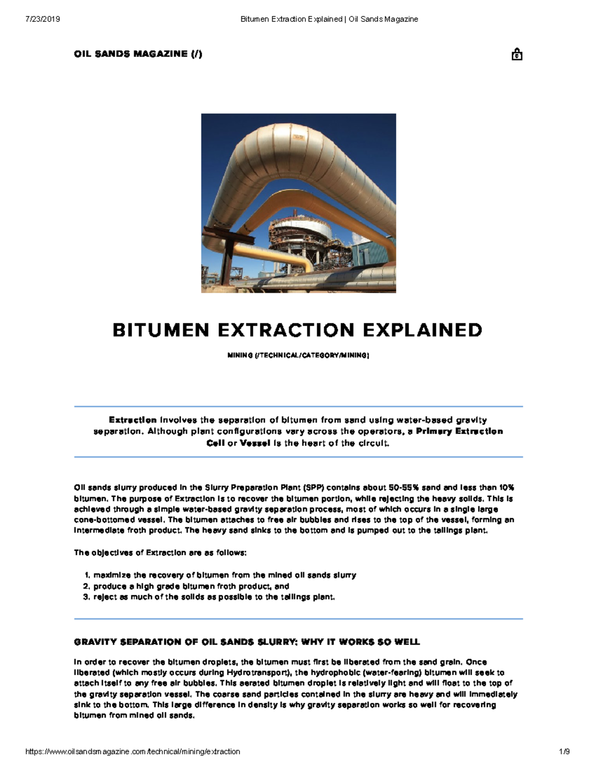 Bitumen Extraction Process Overview - Oil Sands Magazine - Studocu